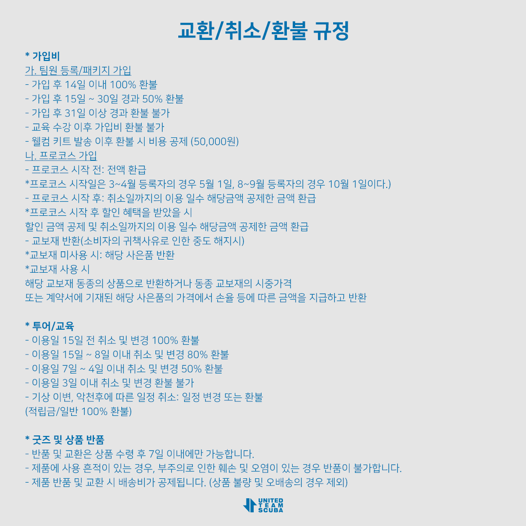 - 교환 및 반품 시 발생하는 배송비는 (주) 오션플래닛 은행계좌로 주문자님의 성함으로 입금해주세요.