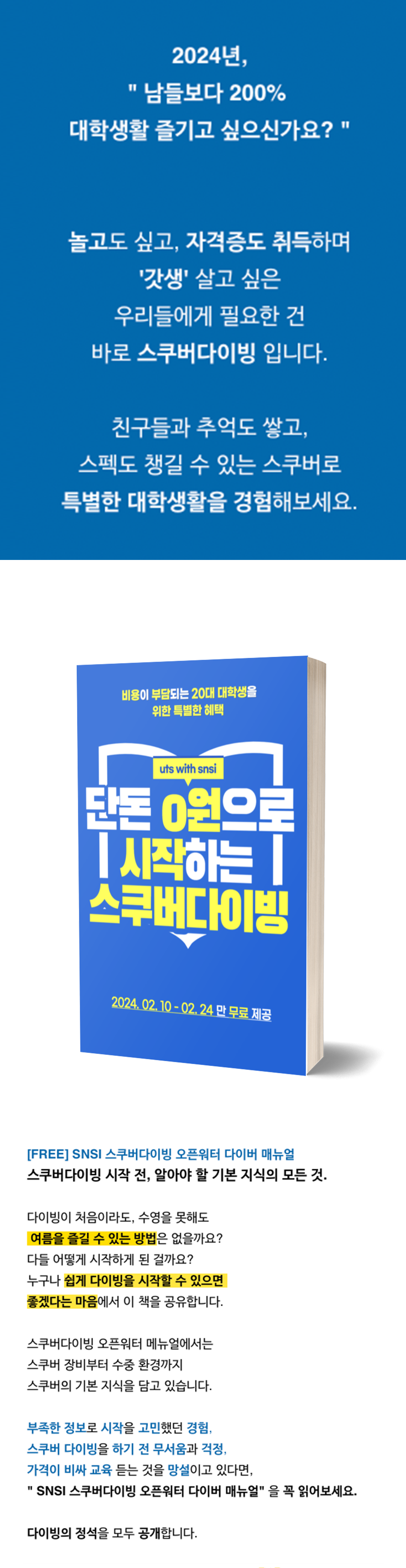 "스쿠버다이빙 level 1 오픈워터 메뉴얼"을